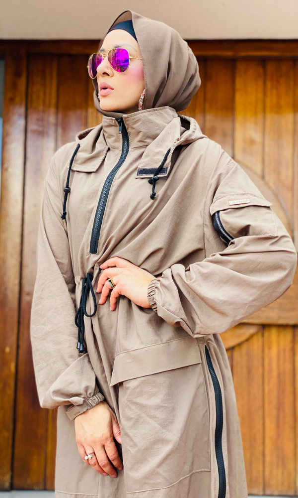 "Engineered for motion, styled for edge. The Oryza Abaya blends technical design with urban modest fashion — featuring adjustable drawcords, statement zip details, and a fluid cut built for all-day wear. Pair it with the matching Oryza Pants for a complete look, or style it solo for maximum impact."
